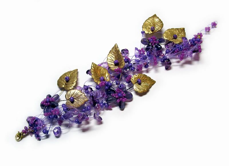 Но с цветопередачей - беда. На самом деле цветы - прозрачные с бледно-розовым оттенком; центральные блестящие бусинки, сердцевинки цветков - ярко-алые, блестящие; неровные камешки-кораллы, которые кажутся рыжими - нежно-красные, те, что посветлее - розовые, ну, а жемчуг - молочно-белый.